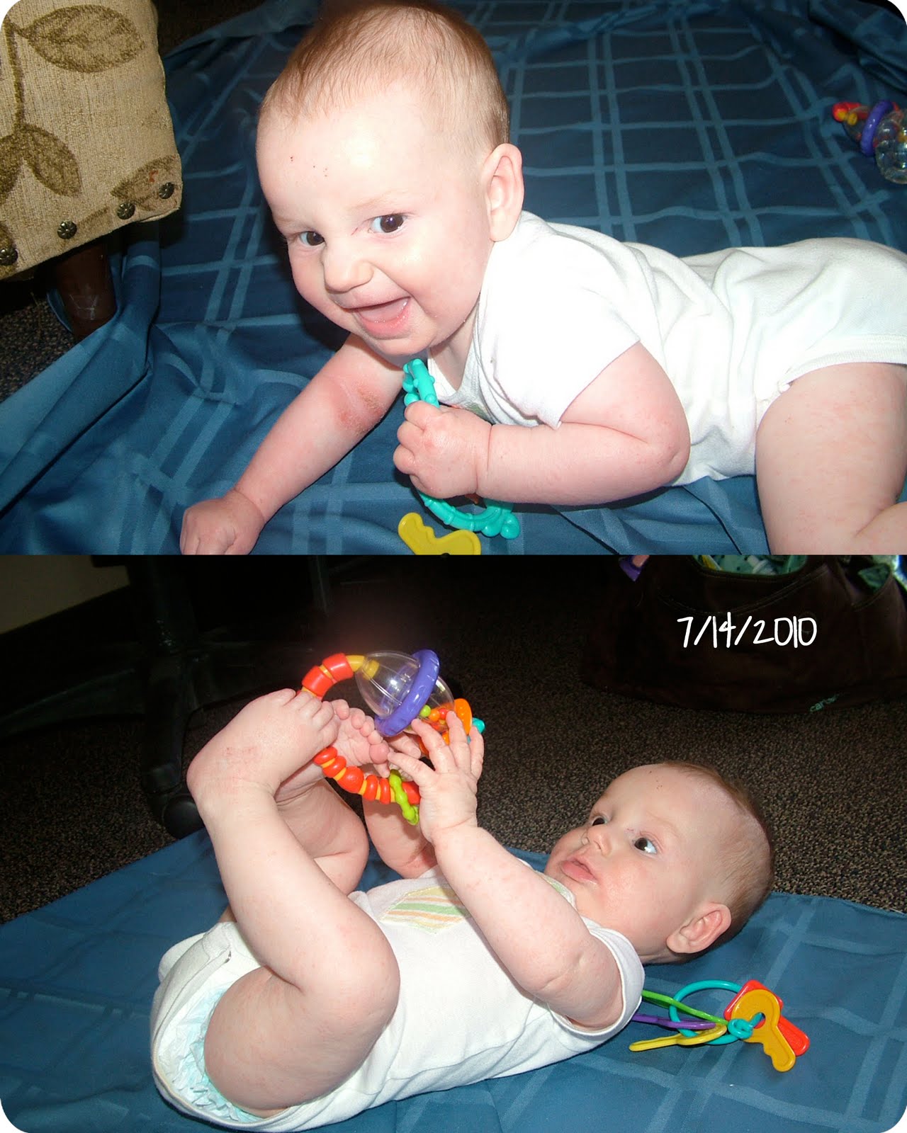 I snapped these pictures at Jon’s office. We had a LONG day of Dr. visits for the children. A.LONG.DAY!!! It involved another blood draw for Mister Man, and two doctors. Their pediatric and dermatologist had to put their heads together about the yucky skin. . Bug is getting checked for Celiac since the new diet isn’t clearing his skin and he is still having the butt vomit. 🙁 Kaylee actually had fun with getting checked by both docs as they decided new skin care treatments for both of the children. We have another new game plan and go in for a follow up in a couple of weeks. Also I am to take away all solids from Regan. So he is nursing more often. I am to re-introduce things one at a time, and am not to give him any baby cereal, or for that matter eat any grains myself. Jon and I joked that I’ve been put on the Atkins diet. Guess I will be able to loose my last 15 lbs……..