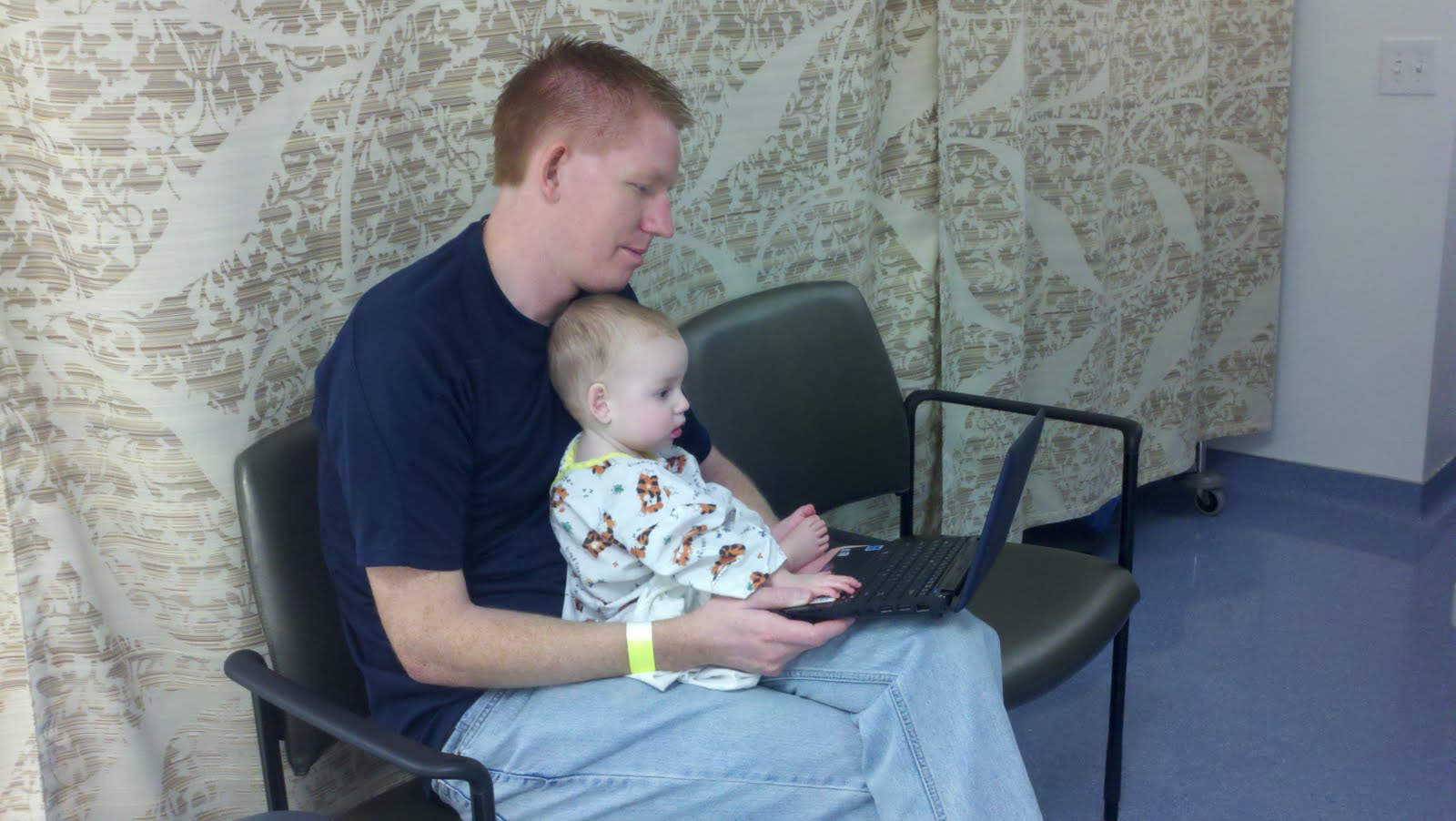 I had to get a picture of a drugged up Regan smile. This was when his favorite part (The “GO GO GO” song. He sings along.) came on after the nurse came and gave him a sedative. They took him back to the O.R. shortly after.