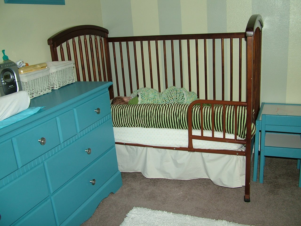 (Regan’s second naptime in the “new” bed. The camera crapped out for his first nap so I used my cell. Those pictures are much worse quality.)