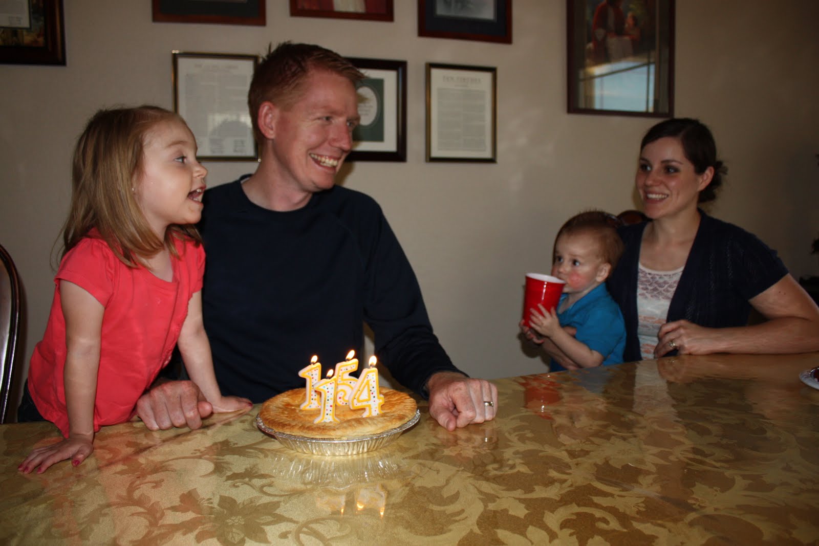But my Mom did insist on having a mini super fast “party” for her favorite child. She had my Dad and I throw a birthday meal together, then she and Dad ran out to get Jon a birthday pie (Croshaw’s Apple). She couldn’t not celebrate (he’s really really the favorite). She even got him a balloon (mostly for the children). We ate, sang, Jon and the children blew out candles, then we left to get the couches.