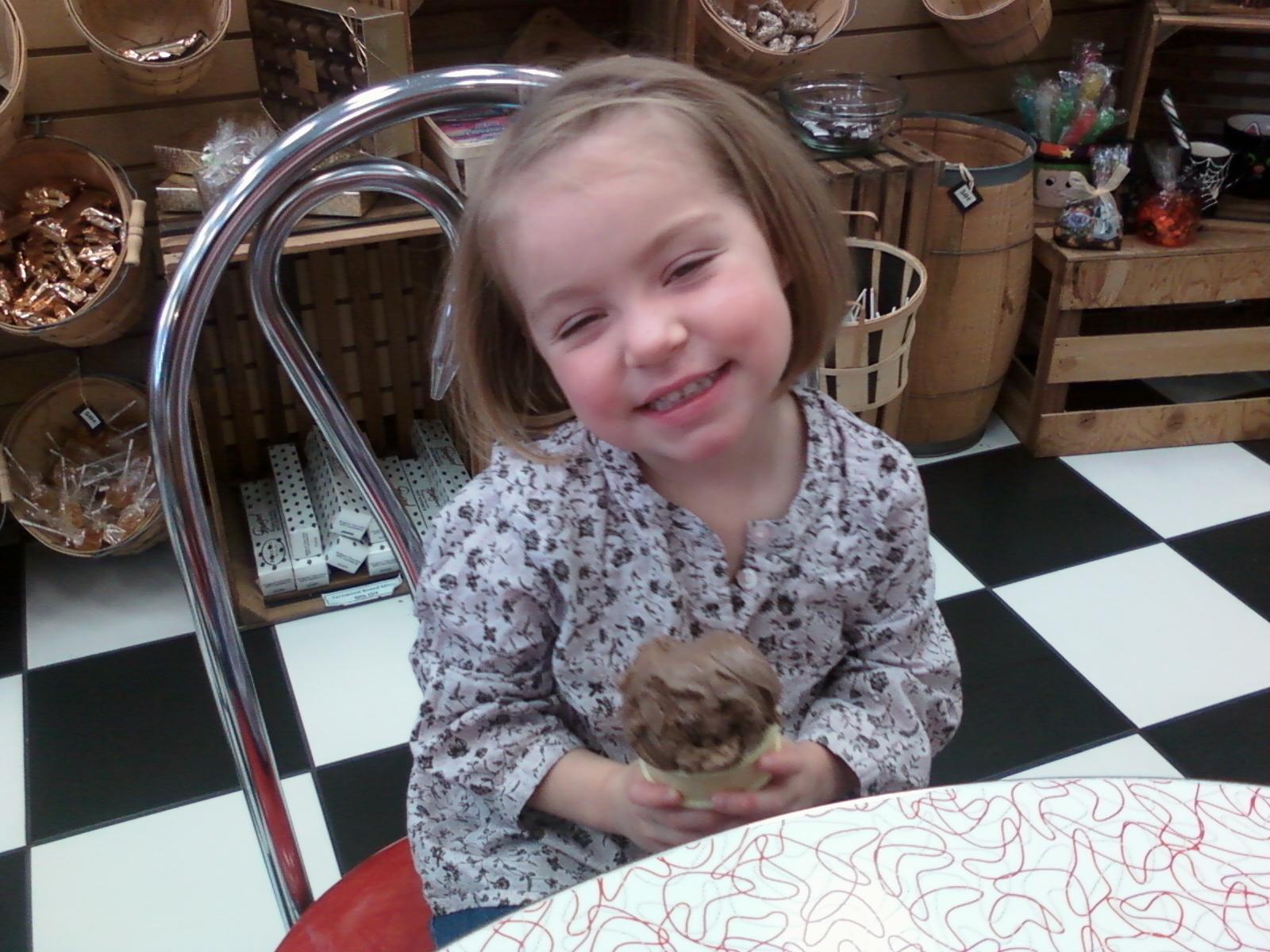 Kaylee was just chatting and giggling the whole time. Telling me and Nancy stories and how excited she was about getting chocolate ice cream. She and Nancy had a long discussion about which was better, chocolate ice cream with or without nuts.