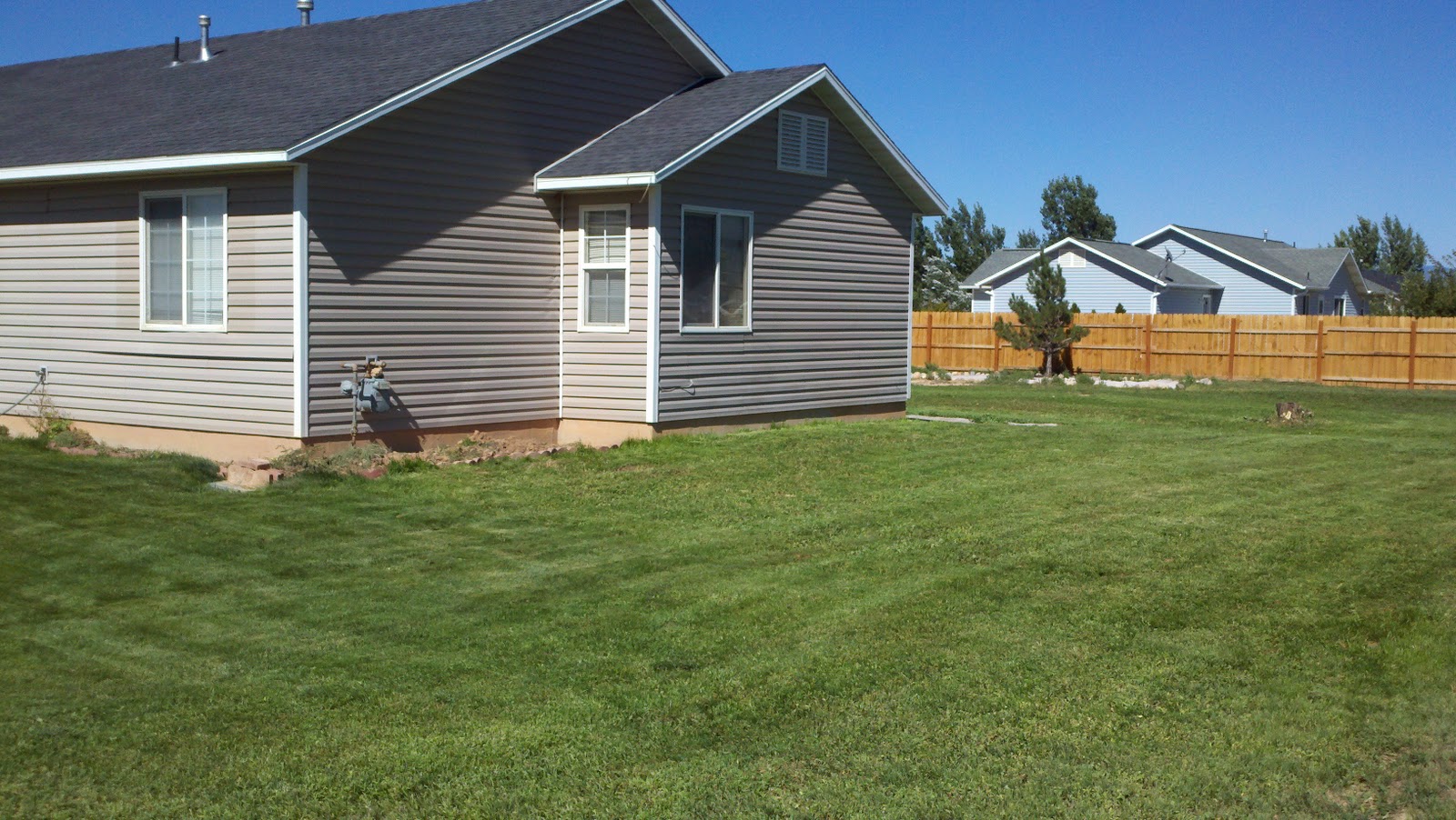 This is what the rest of the 1/2 acre looked when we saw it for the first time. They just had the one small patch of grass in the front and one in the back. We wanted grass over the entire lot. We also wanted a HUGE garden. So our first summer in the house we set everything up to be on a sprinkler system. Jon spent a long time digging up the front yard to put a valve box in so we didn’t have to hand water.