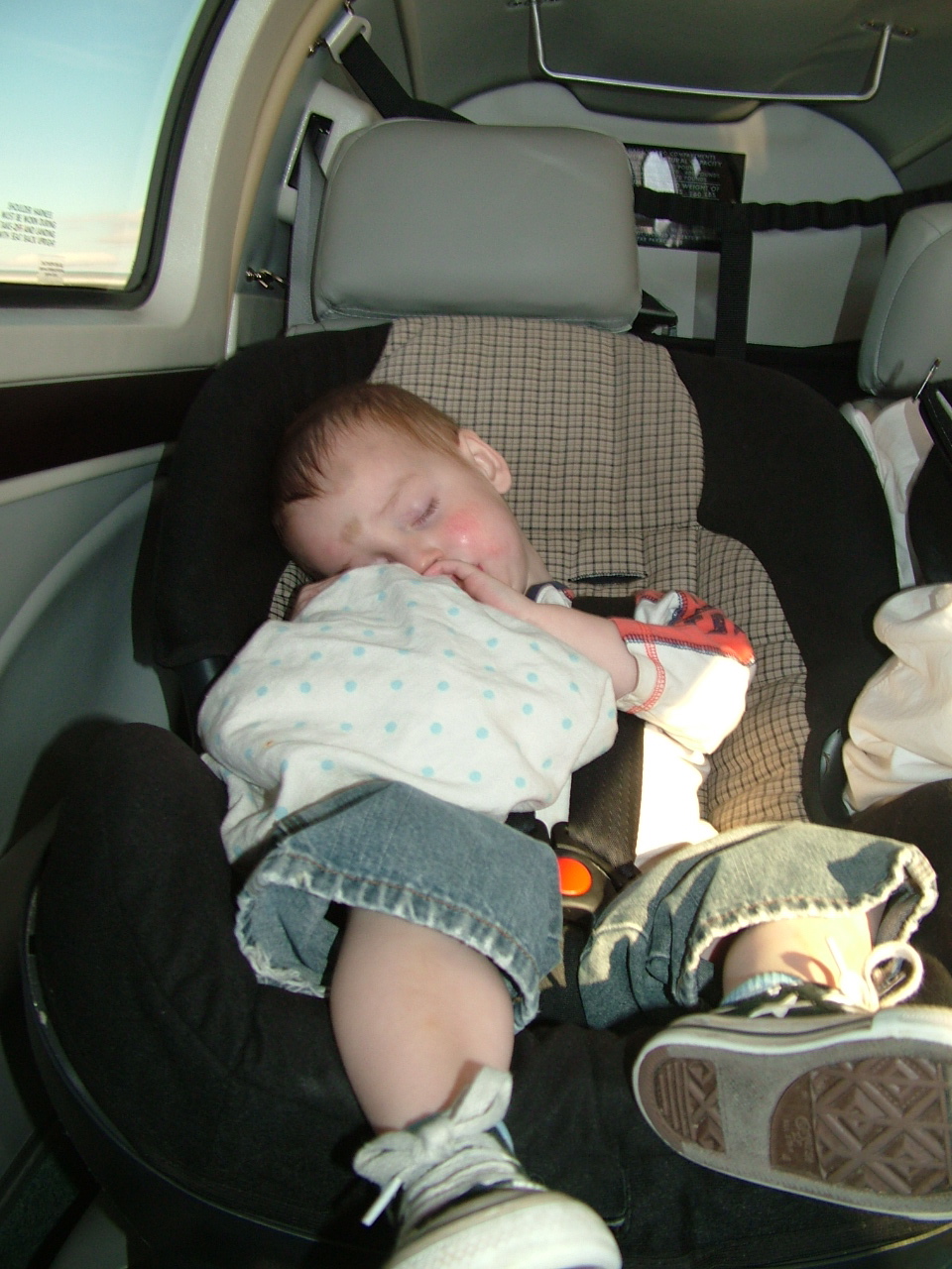 Dwayne came prepared with grocery bags for the kids. He said that the regular puke bags just wouldn’t work. The bag gave Kaylee much comfort.