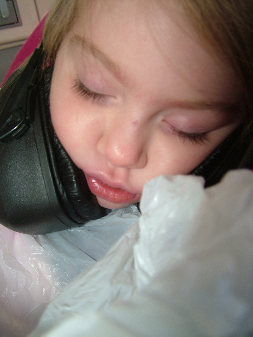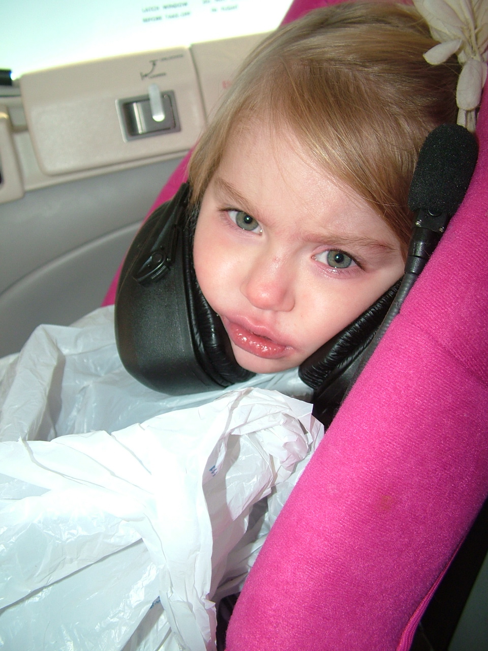 All the turbulence was upsetting Kaylee’s (recently recovered from the stomach ick) tummy. She requested (but never actually used) a puke bag.