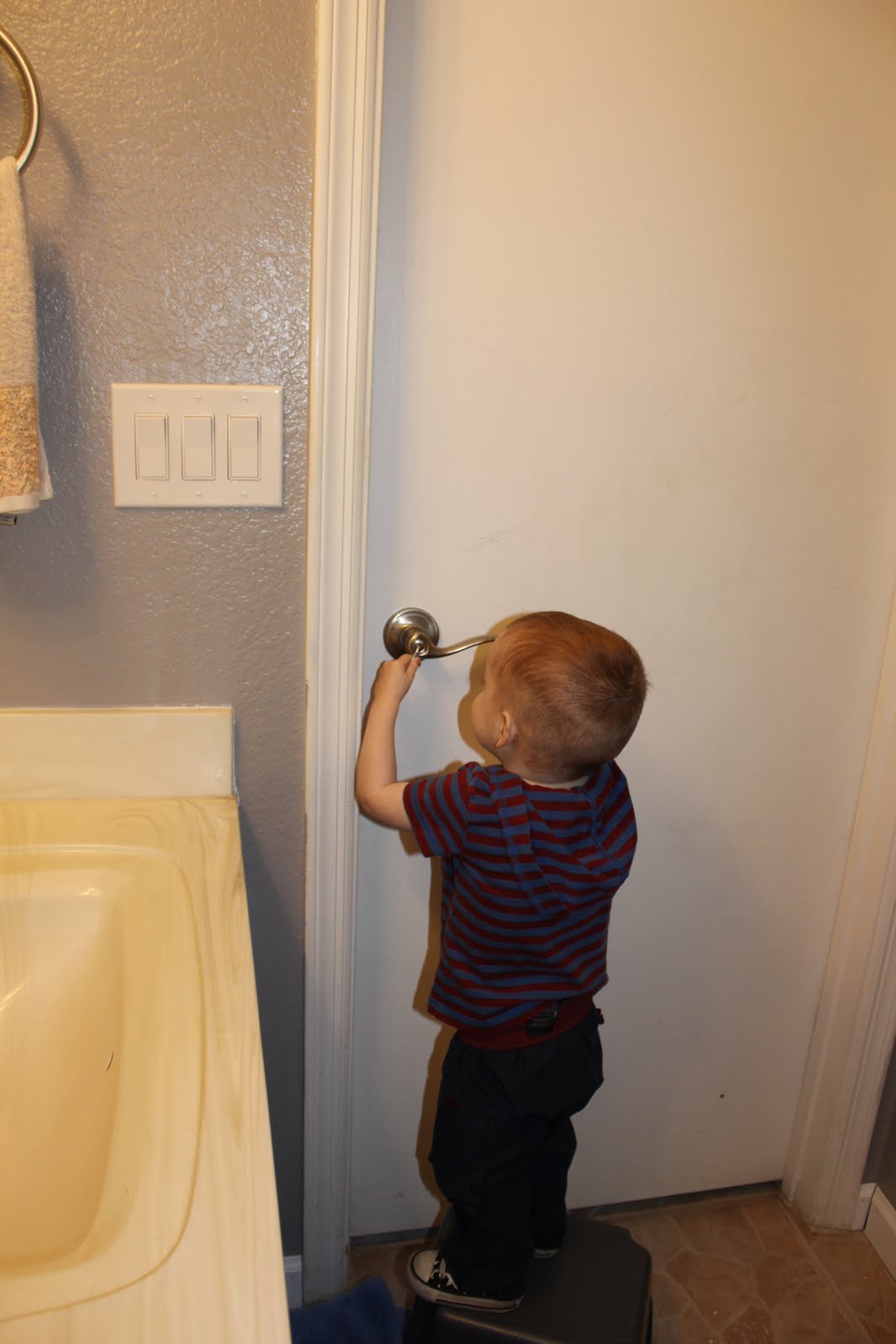 I guess he wanted in bad. I herd him dragging a stool down the hall and decided to wait and see just what my little thinker was up to. You know give him a decent amount of time to get in just a bit of mischief before busting him.