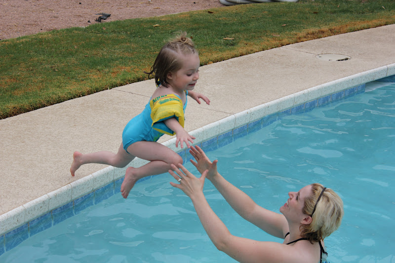 Shannon has been so great at helping Kaylee (kid won’t do anything but CLING to me) out with being in the pool. She get’s freaked out if her feet can’t touch the bottom. Well thanks to Shannon she is now jumping into the pool! Slow and steady with swimming for my two kiddos.