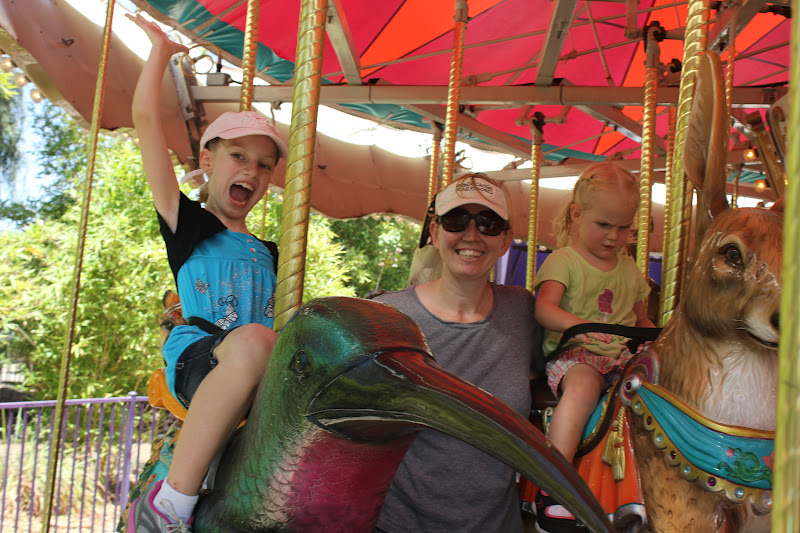 To the carrousel. As you can see Regan was not pleased AT ALL to be on the carrousel.Â