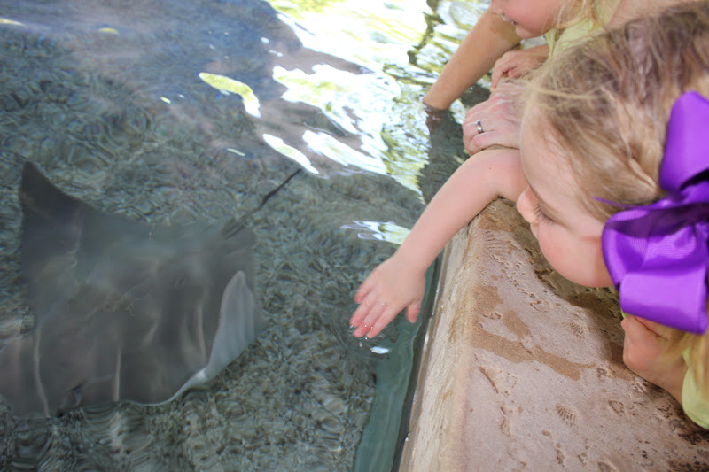 She willingly and happily stuck her hand in the water to pet the sting rays. One even splashed us. Scared me, but Kaylee just laughed.