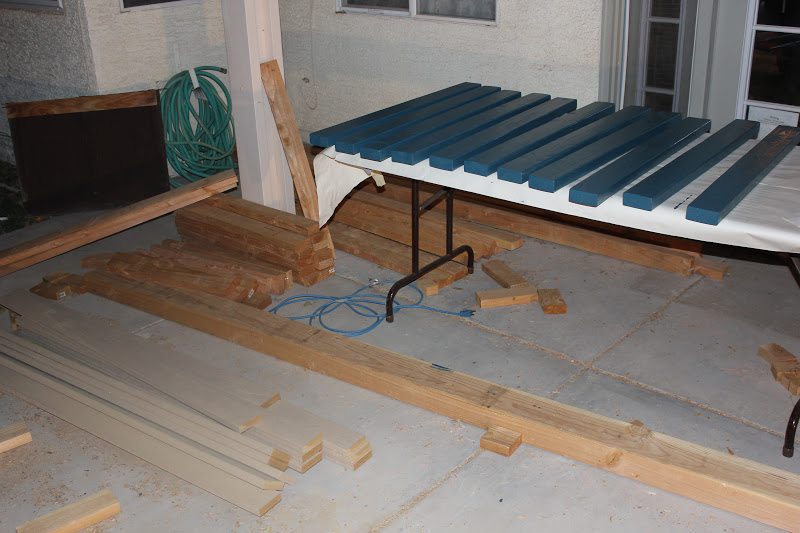 Jon propped up the tower frame so I could thouroghly paint the underside of the wood. Rot prevention and all. And yes we did make sure to use the super duper supposedly impervious lifetime guarantee outdoor paint for this bad boy. We will see how the AZ sun does against it.