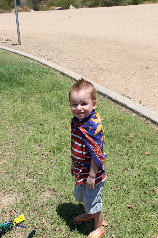 Jon didn’t need it so Regan “flew” around the grass with it for a bit.