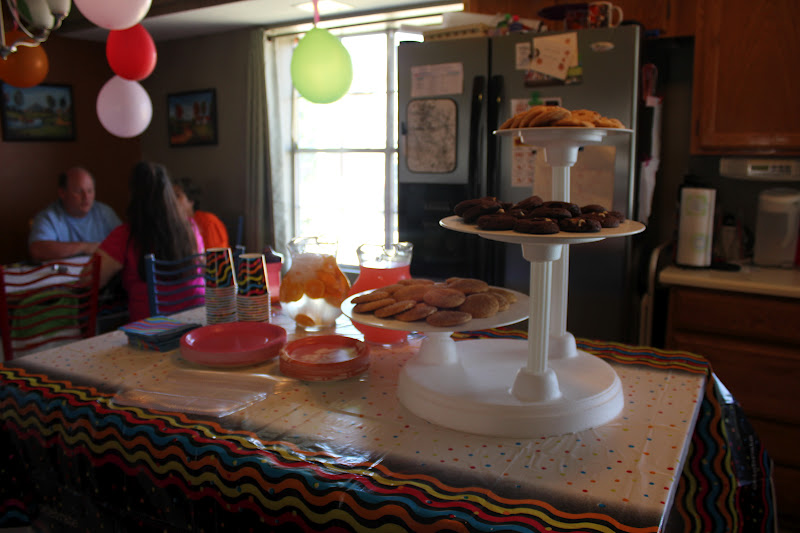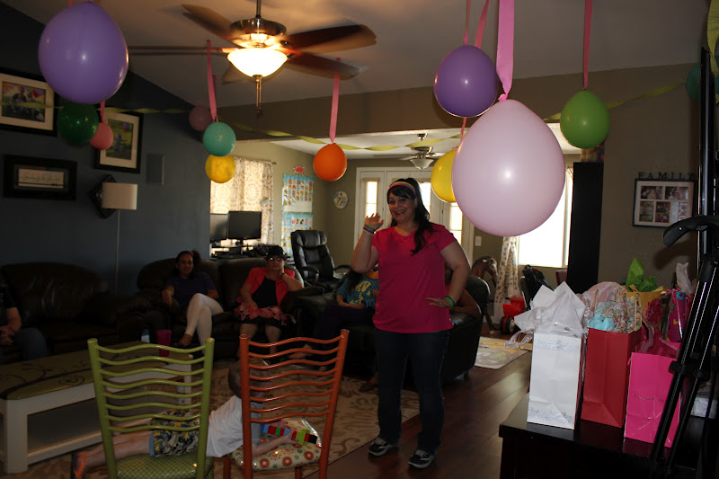 My family got into town the night before, and I wrangled everyone to help my blow up a million balloons, and put streamer everywhere. And rearrange the living room so we could put Josh’s couch in it for more seating.