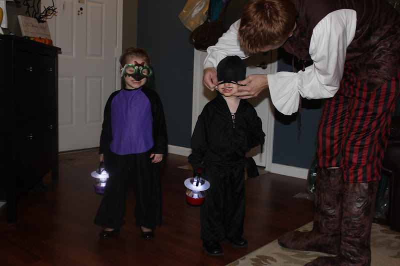 We ended our day of Olivia fun by cutting out a couple of yard bags and taping a skeleton face to the garage door. The girls had fun placing all the creepy teeth.