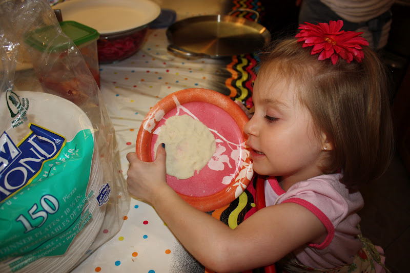 Kaylee much to the DELIGHT of Abuela took off her cape and put on her apron to cook with us. She did amazing. She made two (with help) mini papusas.