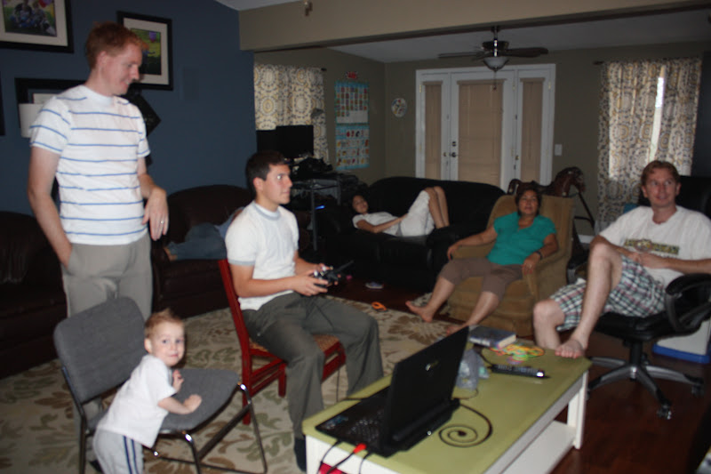 Those not cooking or flying where well, flying. Jon set up his flight simulator up on the T.V. for all to play while awaiting awesome, delish, glorious food.